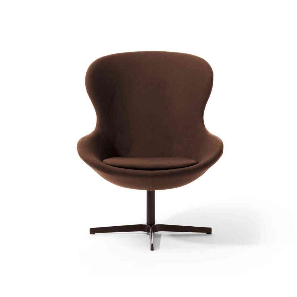 Krzesło Round ma zawijany kształt z imponującymi, ale niezwykle dobrze wyważonymi proporcjami, które nadają mu bardzo przytulny wygląd. Dostępny jest w wersji skórzanej lub tapicerowanej tkaniną lub w specjalnej wersji mieszanej łączącej tkaninę i skórę.