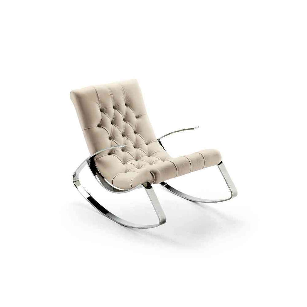 Oryginalny fotel bujany o świeżym, młodym designie i ekskluzywnym, głęboko zapinanym wykończeniu „capitonné”.