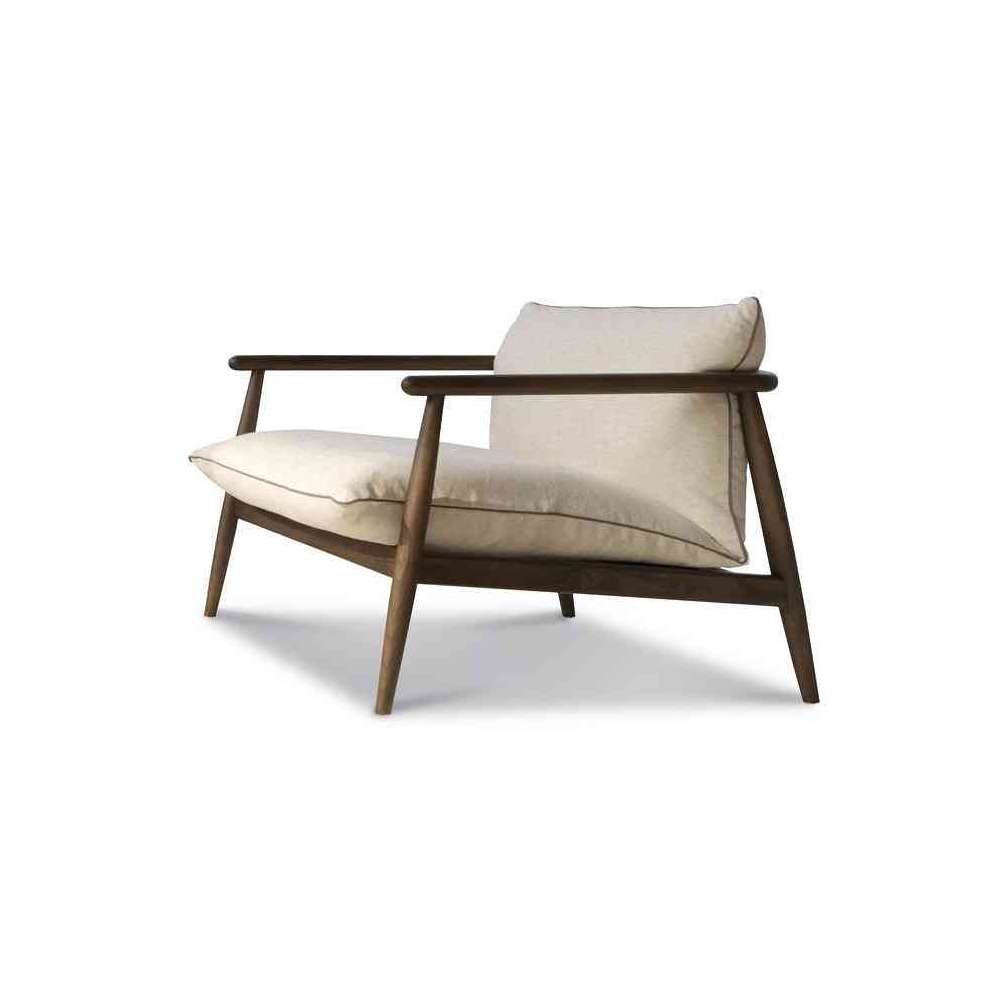 Prawdziwe połączenie tradycji - widoczne w ręcznym wykonaniu poduszki oparcia ze skórzaną lamówką - i nowoczesności, oferowane przez lekką i wyrafinowaną drewnianą konstrukcję.
