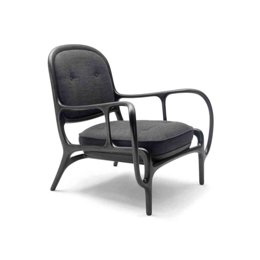 Fotel wykonany z litego drewna orzecha amerykańskiego lub klonu, tapicerowane siedzisko i oparcie. Taca pod siedzeniem jest zawsze pokryta skórą.