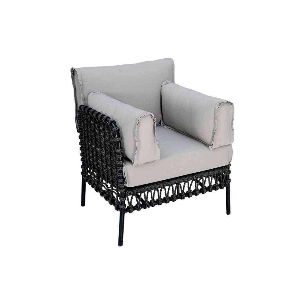 Fotel z malowanego proszkowo aluminium z plecionym węzłem z liny HDPE.