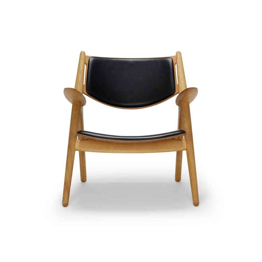 Wyjątkowo wygodny fotel i typowy mebel Wegnera - funkcjonalny i rzeźbiarski z wyjątkowym wykończeniem i dostępny z litego drewna lub tapicerowany. Fotel jest blisko spokrewniony ze słynnym krzesłem do jadalni Wegnera, Sawbuck Chair. Krzesło jest dostępne w kolorze dębu lub jako połączenie dębu i orzecha, a siedzisko i oparcie mogą być tapicerowane tkaniną lub skórą.