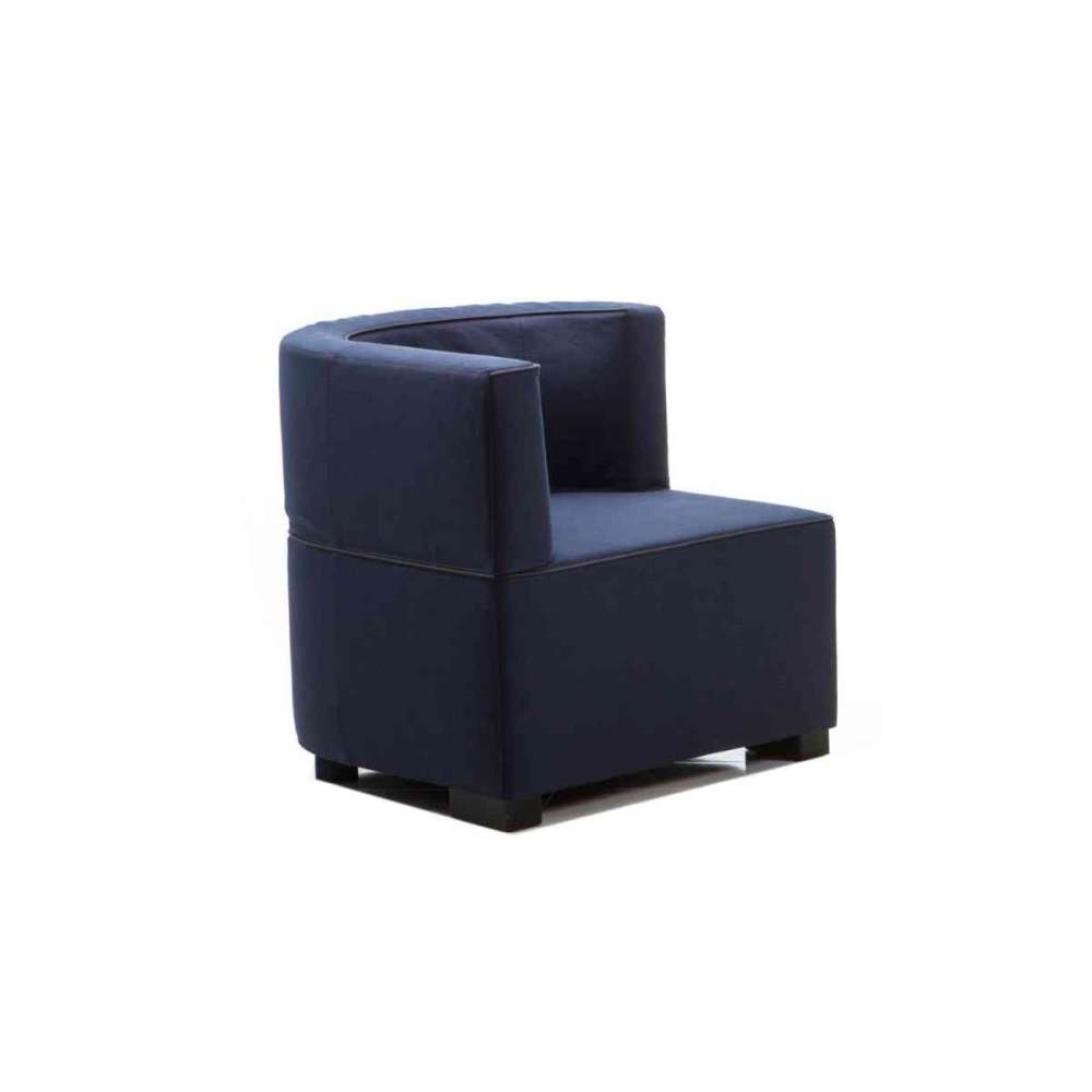 Fotele można ustawiać w różnych kierunkach: Eksperymentuj z kontrastującymi aspektami, takimi jak bliskość i dystans, abstrakcja i emocje, ograniczenie i otwartość. Sofa w kształcie skrzydła – mebel o niepowtarzalnym charakterze – oferuje różne głębokości siedzisk oraz różne pozycje do siedzenia i leżenia. Można połączyć z fotelami lub udoskonalić dwiema poduszkami.