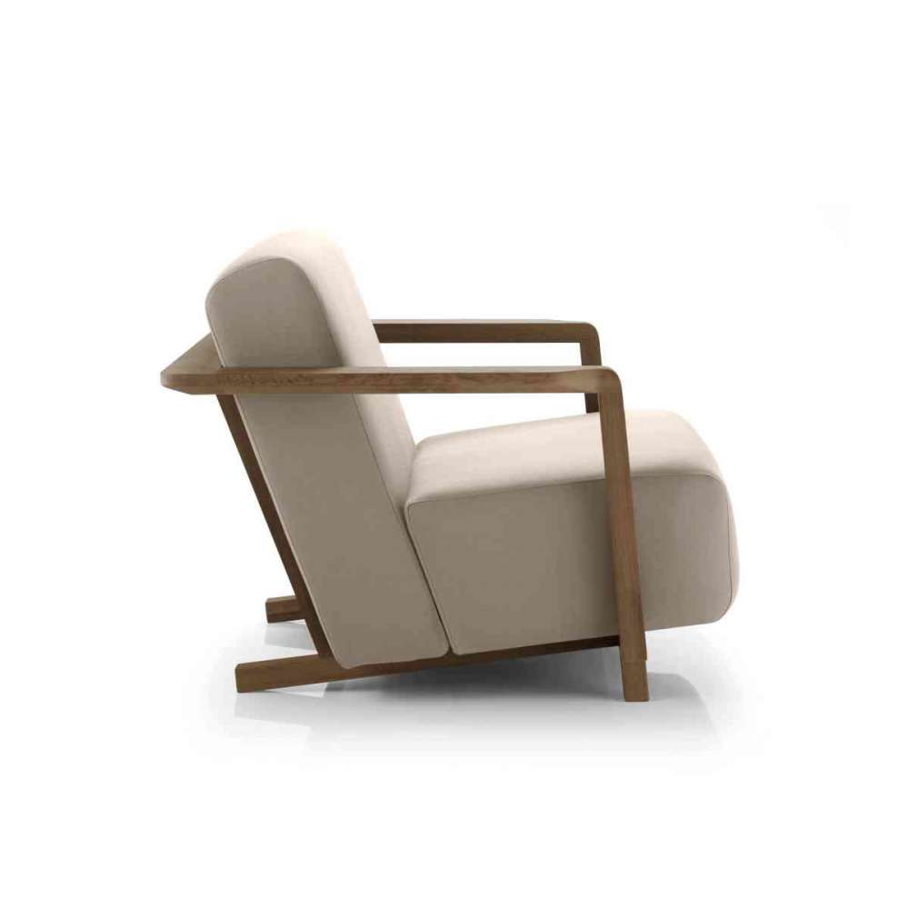 Ta gama foteli z litego dębu wyróżnia się nie tylko prostym wzornictwem i dużymi rozmiarami, ale wyróżnia ją również fakt, że jest dostępna zarówno do użytku wewnątrz, jak i na zewnątrz. Elementy tapicerowane ciasno wpasowują się w stolarkę konstrukcji. Wykonana z drewna poddanego obróbce termicznej i tkanin technicznych, wersja zewnętrzna jest zaprojektowana tak, aby wytrzymać trudne warunki pogodowe.