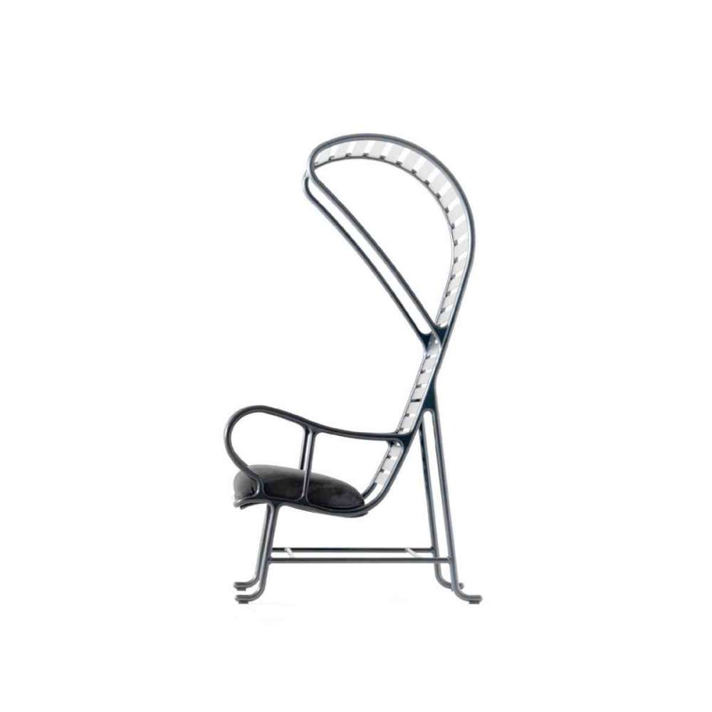 Konstrukcja wykonana jest z odlewanego aluminium, a laminaty z ekstrudowanego aluminium. Pomalowany Alesta Anodic Black. Siedzisko i oparcie tapicerowane różnymi materiałami i skórami BD.