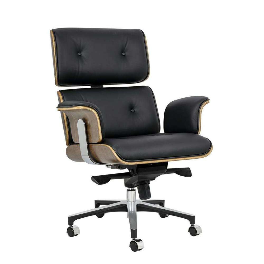 Fotel biurowy LOUNGE BUSINESS czarny - sklejka orzech, skóra naturalna, stal polerowana