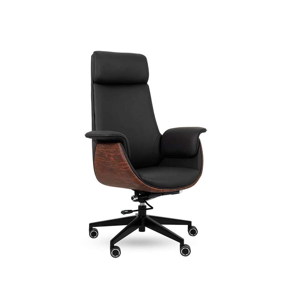 Fotel biurowy ADMIRAL czarny. Połączenie elegancji, komfortu i funkcjonalności. Tapicerowany miękką, wysokiej jakości skórą ekologiczną, zachwyca profilowanym oparciem z zagłówkiem oraz stylowym wykończeniem z ekoskóry imitującej drewno. Ergonomiczna konstrukcja z możliwością regulacji wysokości i odchylenia oparcia zapewnia wygodę nawet podczas wielogodzinnej pracy. Metalowa, obrotowa podstawa umożliwia swobodne przemieszczanie się i gwarantuje trwałość na lata. Admiral to doskonały wybór do gabinetu lub domowego biura dla osób, które cenią sobie design w parze z wygodą. Wymiary: wys. 116 - 125 cm / szer. 80 cm / gł. 70 cm Wysokość do krawędzi siedziska: 45 - 53 cm Wysokość do podłokietników: 71 - 79 cm Siedzisko: szer. 45 cm / gł. 45 cm Oparcie: wys. 77 cm / szer. 45 cm Podstawa: 70 x 70 cm Waga netto: 15 kg Wymiary opakowania: 86 cm / 41 cm / 65 cm.