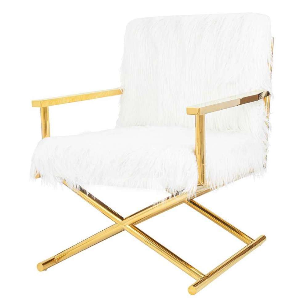 KARE fotel MR. FLUFFY biały / złoty