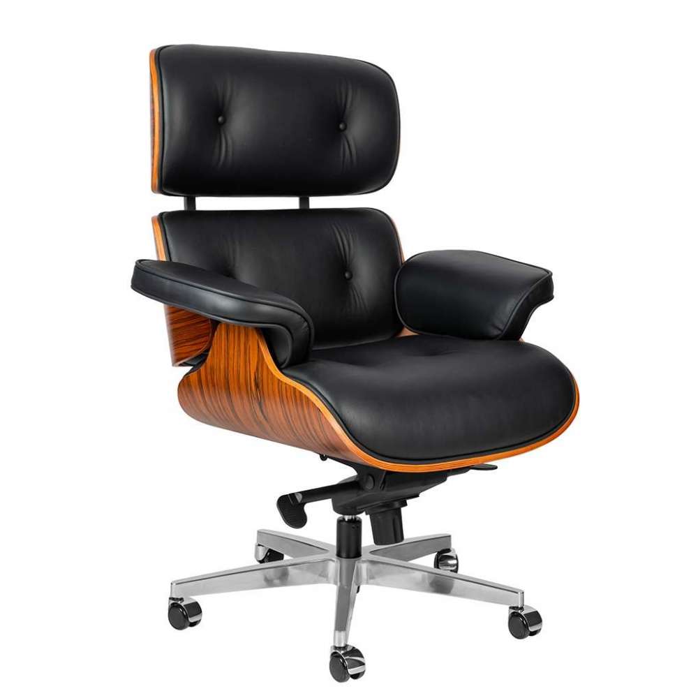 Fotel biurowy LOUNGE GUBERNATOR czarny - sklejka różana, skóra naturalna, stal polerowana