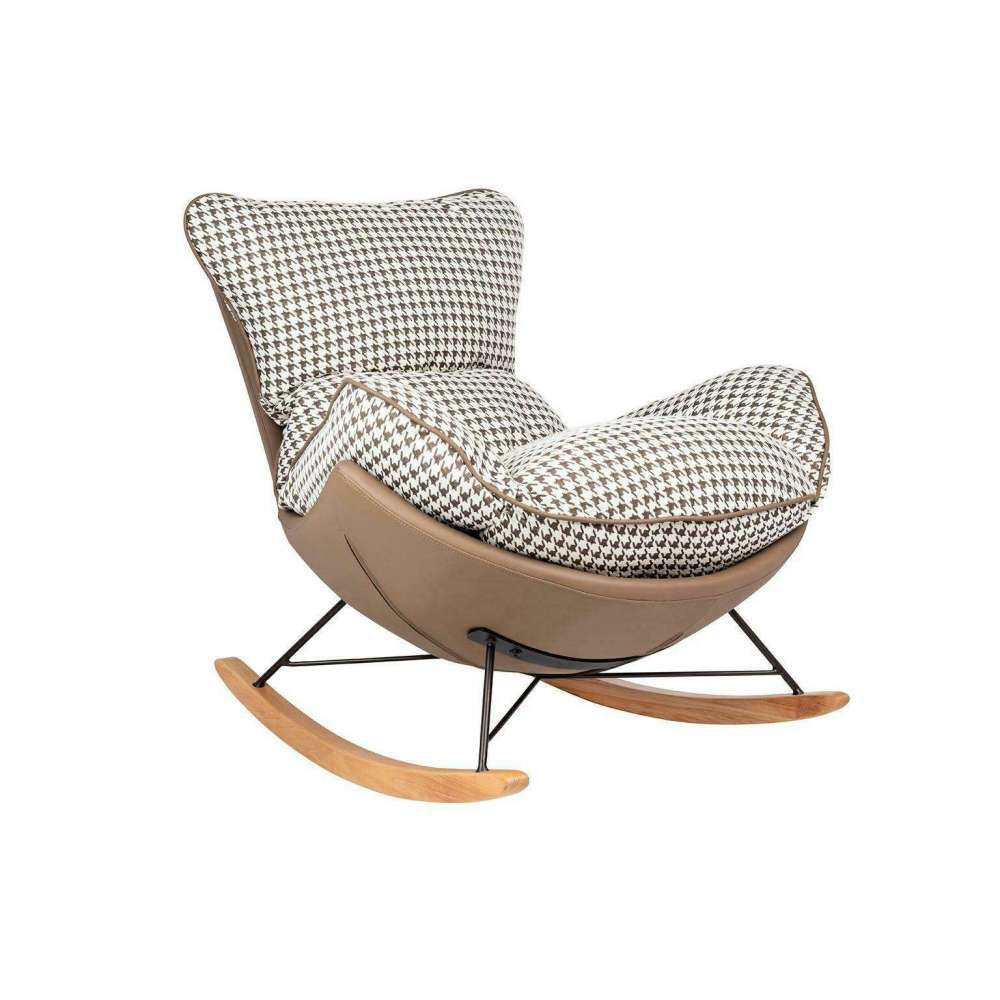 Fotel bujany OTILIA brązowa pepitka - drewniane płozy, ekoskóra