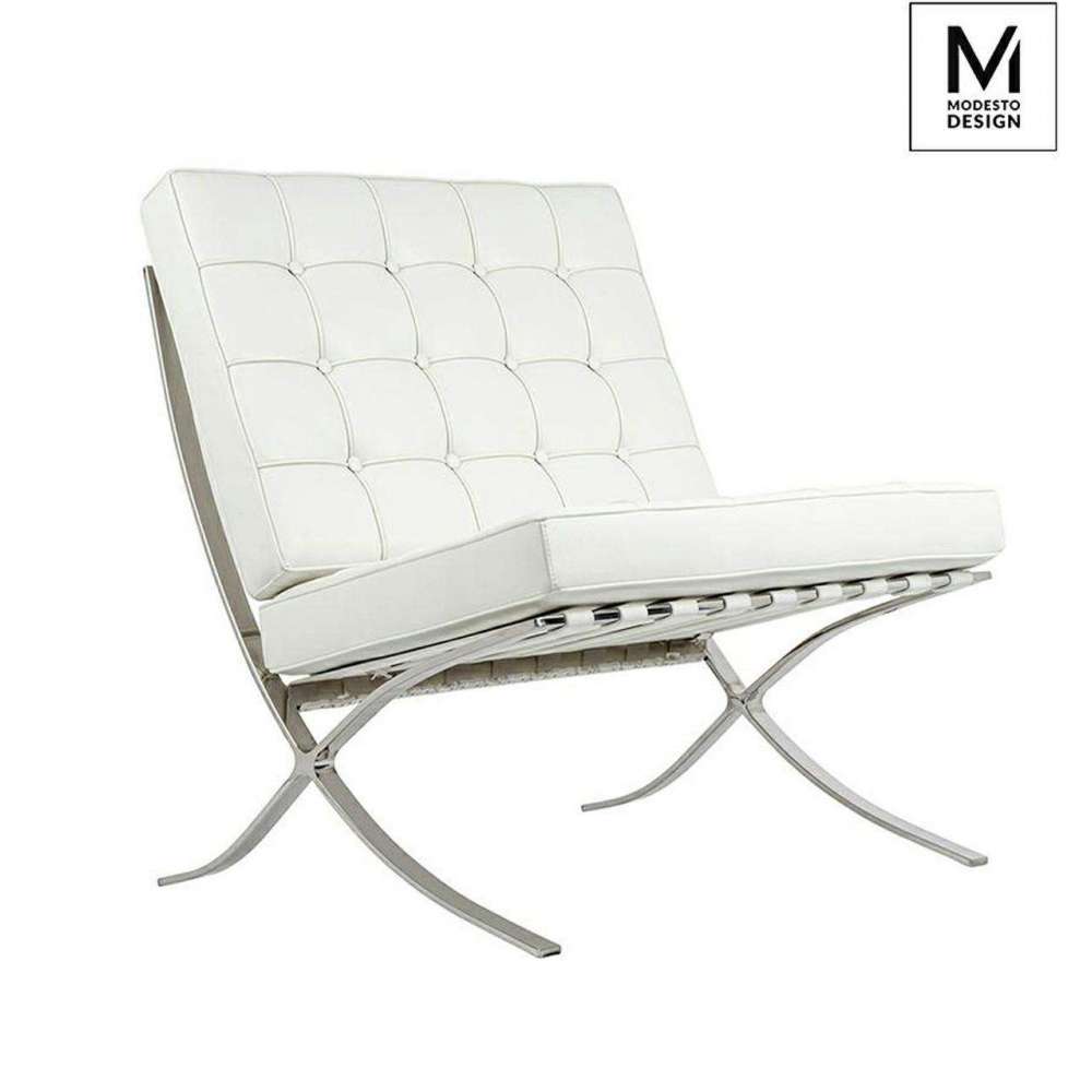 MODESTO fotel BARCELON biały - ekoskóra, stal polerowana