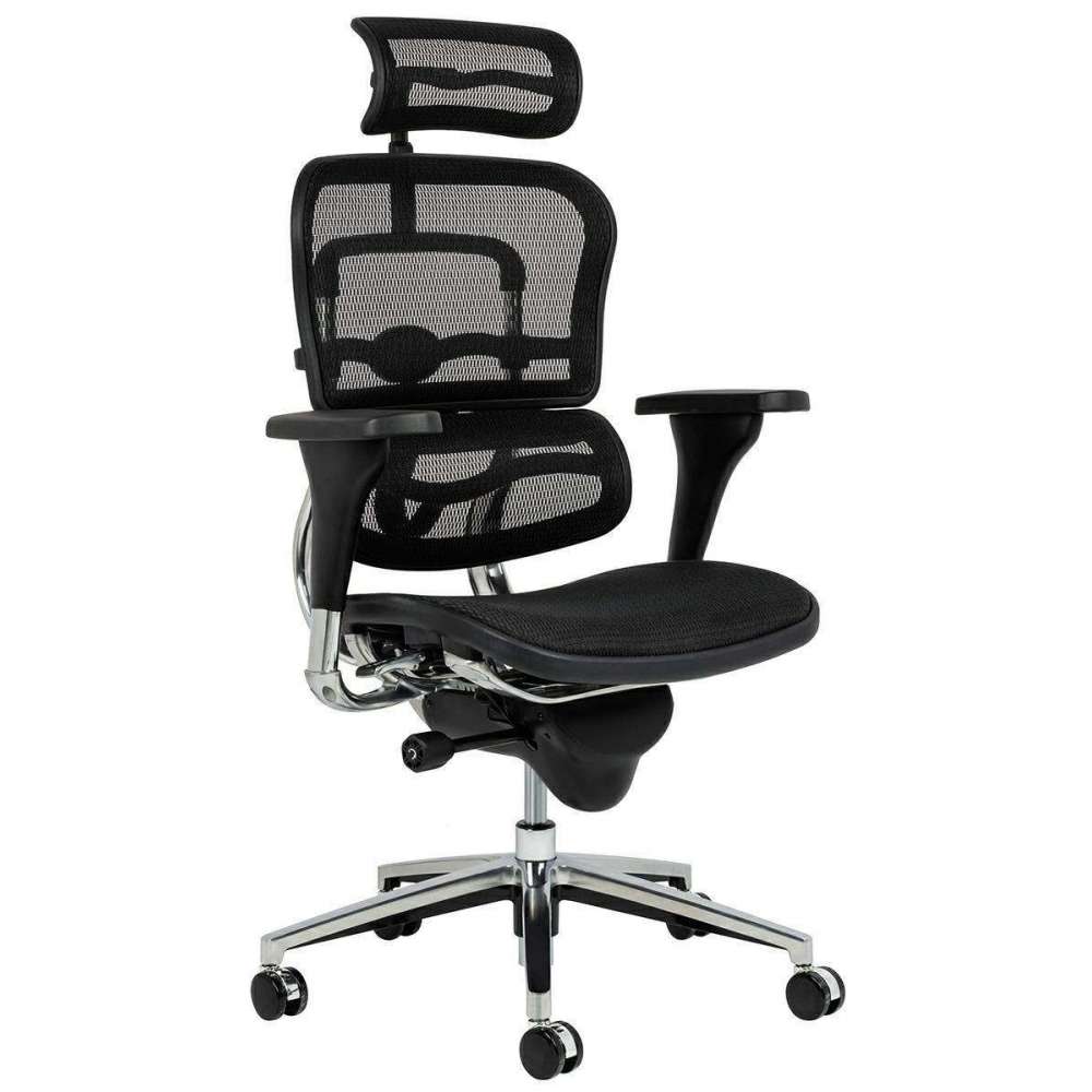 Fotel biurowy ERGO czarny. Pełen zakres funkcji ergonomicznych i szereg innowacyjnych rozwiązań. Fotel wyposażony jest w mechanizm ruchowy, który umożliwia łączne wychylenie oparcia i siedziska z możliwością blokady w wybranej pozycji. Szeroki, wysoki zagłówek zapewnia odpowiednie podparcie głowy podczas pracy i w chwilach relaksu. Fotel posiada certyfikat BIMFA oraz GREENGUARD, świadczy to o najwyższej jakości produktu, niskiej emisyjności, co pomaga utrzymać zdrowsze środowisko w pomieszczeniach zamkniętych, spełni oczekiwania najbardziej wymagających klientów. Wymiary: wys. 112 - 125 cm / szer. 76 cm / gł. 91 cm Wysokość do krawędzi siedziska: 44 - 52 cm Wysokość do podłokietników: 60 - 78 cm Siedzisko: szer. 53 cm / gł. 48 cm Oparcie: wys. 54 cm / szer. 52 cm Podłokietniki: wys. 30 cm / szer. 10 cm / gł. 27,5 cm Podstawa: śr. 74 cm Zagłówek: szer. 32 cm / wys. 14 cm / gł. 9 cm Kółka: szer. 4 cm Wymiary opakowania: 79 cm / 54 cm / 68 cm.