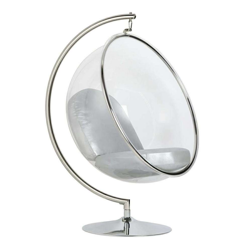 Fotel BUBBLE STAND poduszka srebrna - podstawa chrom, korpus akryl, poduszka ekoskóra