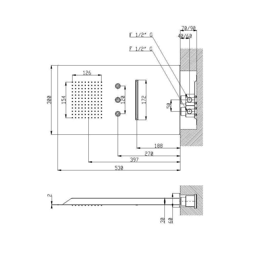 Naścienna głowica prysznicowa z 2 dyszami Aquaelite Minimal