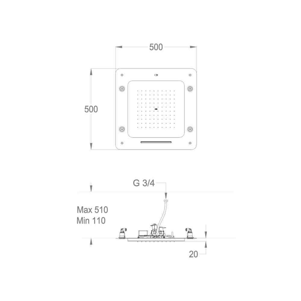 Głowica prysznicowa ze stali nierdzewnej do zabudowy LED z chromoterapią Fir Italia SHOWERS STEEL - 8572388