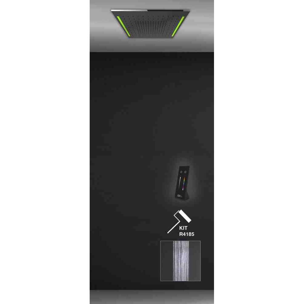 Color to kwadratowa wielofunkcyjna głowica prysznicowa do zabudowy w suficie z chromoterapią z funkcją deszczu. W zestawie części elektroniczne ze zdalnym wodoszczelnym sterowaniem i hakiem. Pasuje do zasilacza 12V, brak w zestawie. Do uzupełnienia pokrowcem (brak w zestawie).
