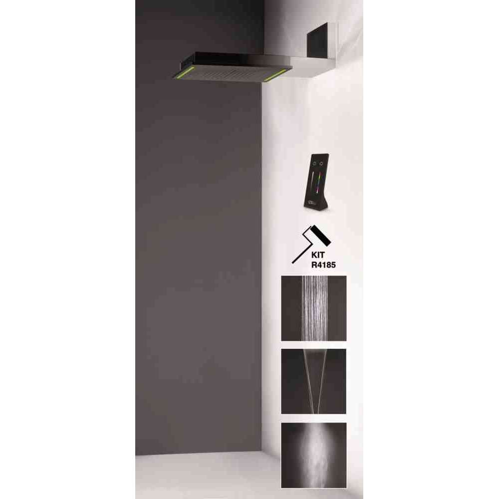 Color to wielofunkcyjna kwadratowa głowica prysznicowa z chromoterapią ścienną z funkcją deszczu, wodospadu i nebulizacji. W zestawie części elektroniczne ze zdalnym wodoszczelnym sterowaniem i hakiem. Pasuje do zasilania 12V.