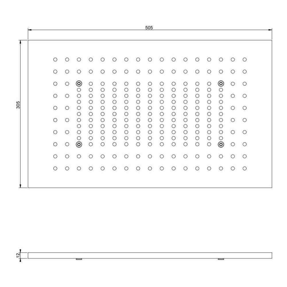 Minimali to prostokątna głowica prysznicowa wpuszczana w sufit z funkcją deszczu.