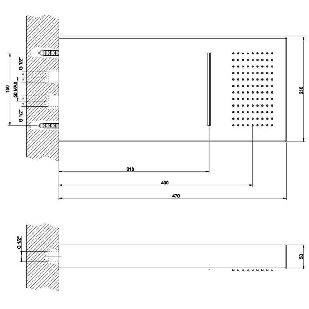 Prostokątny prysznic wodospadowy do montażu na ścianie Gessi SEGNI