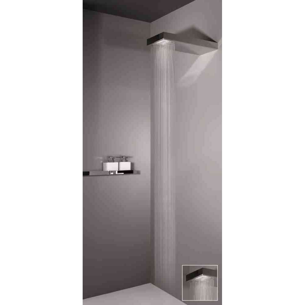Segni to prostokątna, montowana do ściany, stalowa głowica prysznicowa z systemem zapobiegającym osadzaniu się kamienia.
