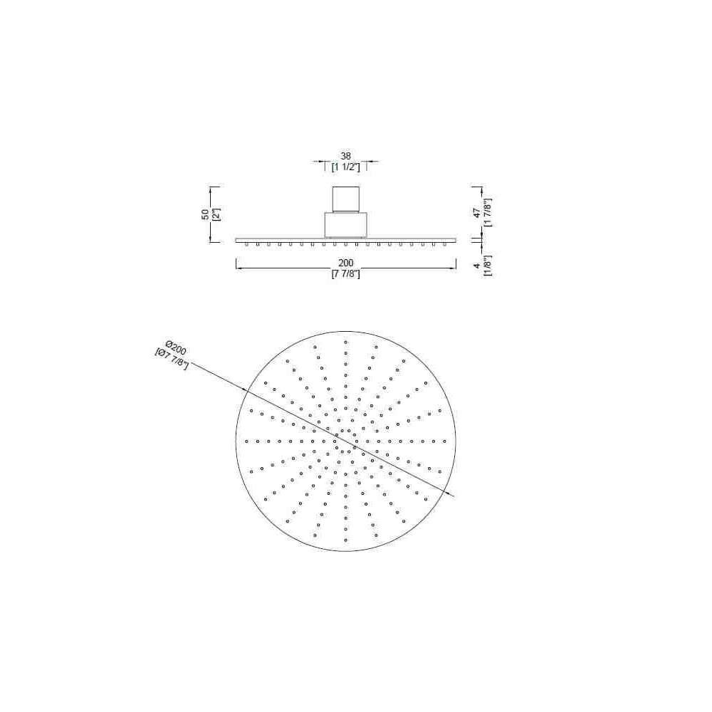 Prysznic okrągły o średnicy 200mm z silikonowymi dyszami + ramię prysznicowe 300mm o przekroju okrągłym