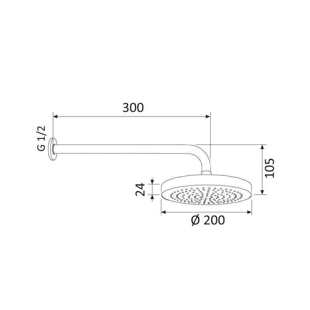 Głowica prysznicowa mosiężna śr.20 cm, grubość 2,4 cm, z ramieniem mosiężnym 30 cm