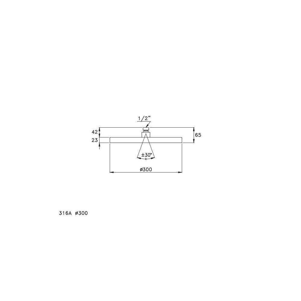 316A Deszczownica, model cienki, zdejmowana podstawa antywapienna, przegub kulowy wahliwy, średnica 200 mm lub 300 mm