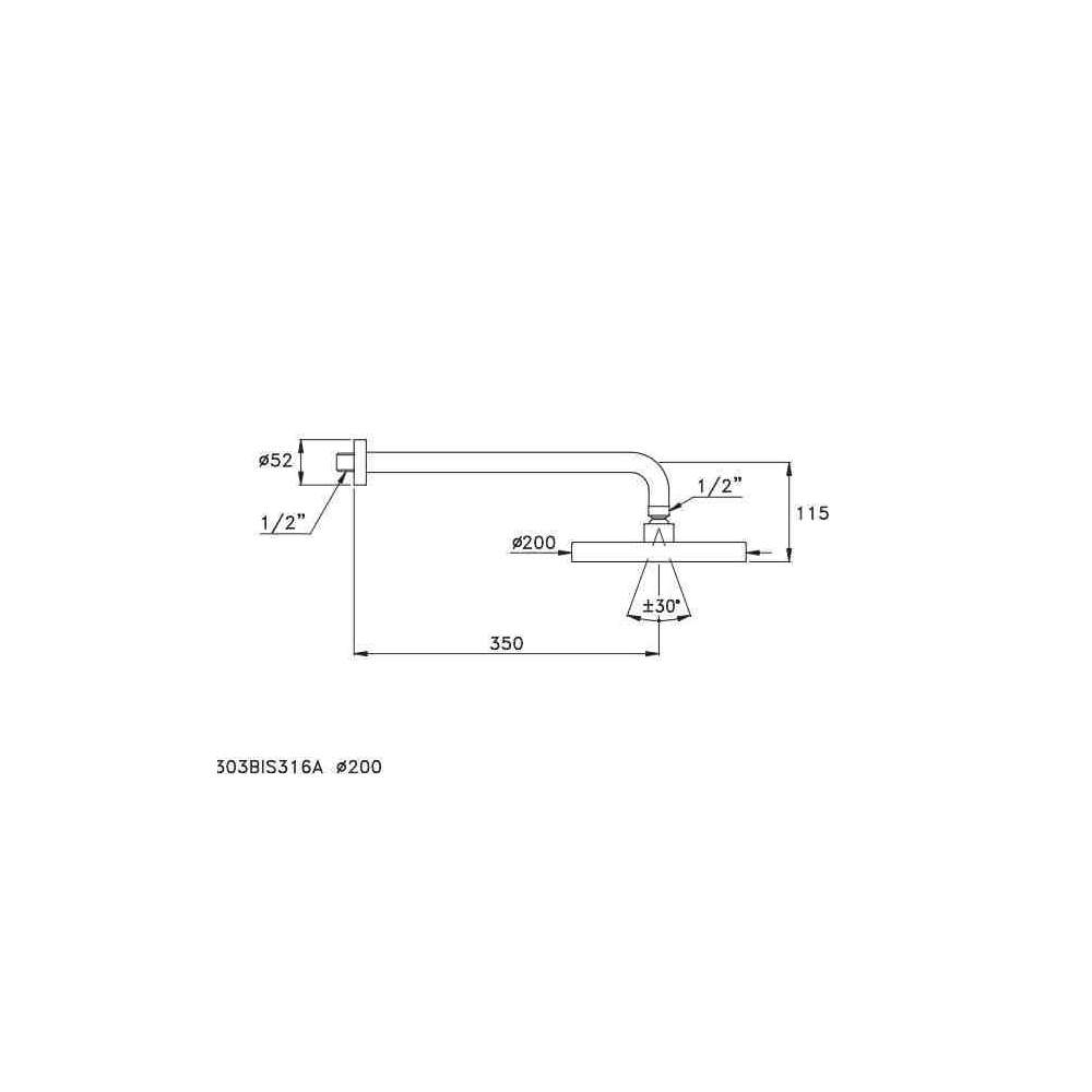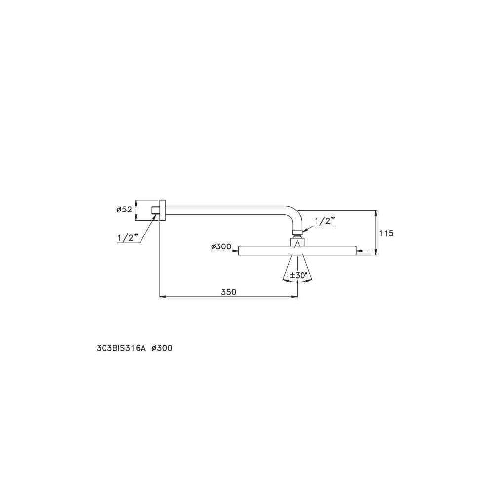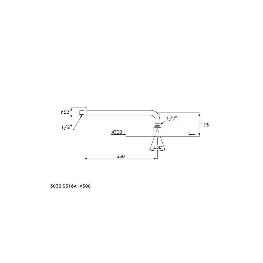 303BIS316A Ramię prysznicowe z głowicą prysznicową ref. 316A, model cienki, ze zdejmowaną podstawą antywapienną, kierunkowy ze złączem kulowym, średnica 200 mm lub 300 mm.