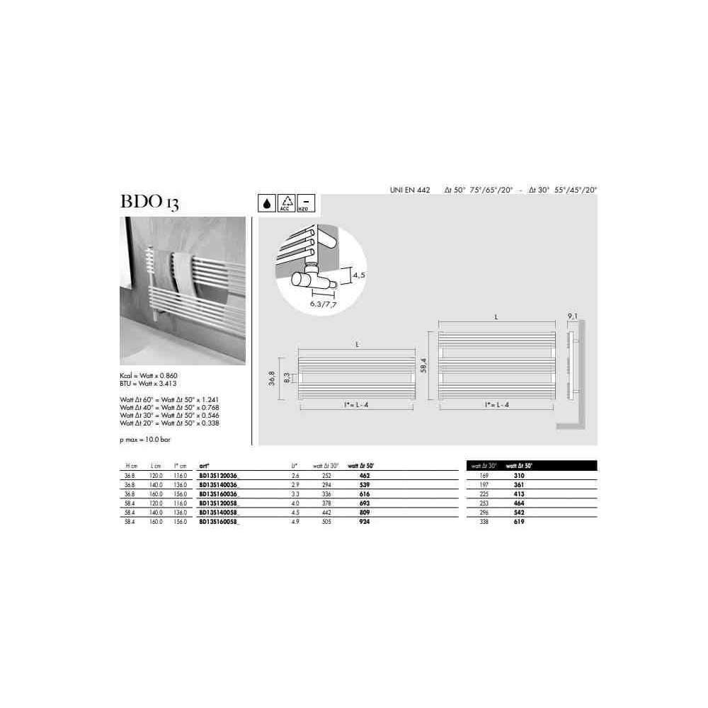 BD to akronim określający gamę wieszaków na ręczniki Antrax IT, dostępnych w różnych wymiarach i mocach grzewczych, która teraz zostanie powiększona o nową wersję wieszaka na ręczniki w wersji poziomej. Dzięki temu szczególnemu kształtowi wieszak na ręczniki znajdzie teraz możliwość wygodnego montażu pod wannami, pod oknami lub nad blatem zlewozmywaka. Występuje z elementem o średnicy 13 mm i 25 mm lub w wersji BDO Trim charakteryzującej się elementami prostokątnymi. BDO_13 to podgrzewacz do ręczników dla linii BD13 ustawionej poziomo.