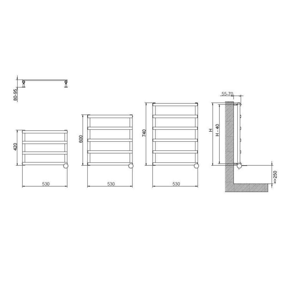 Elektryczny, ścienny podgrzewacz do ręczników ze stali nierdzewnej polerowanej.
