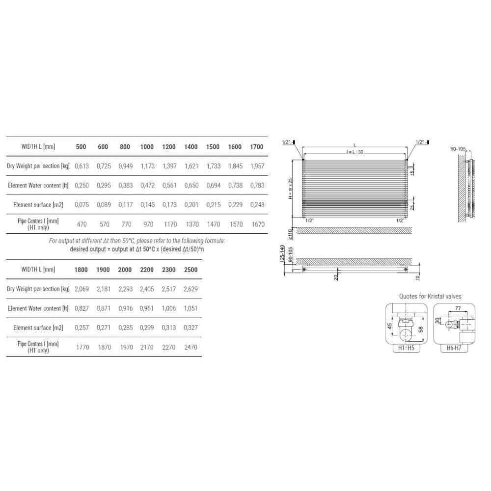 Poziomy ścienny grzejnik wody gorącej Cordivari KARIN VX TANDEM
