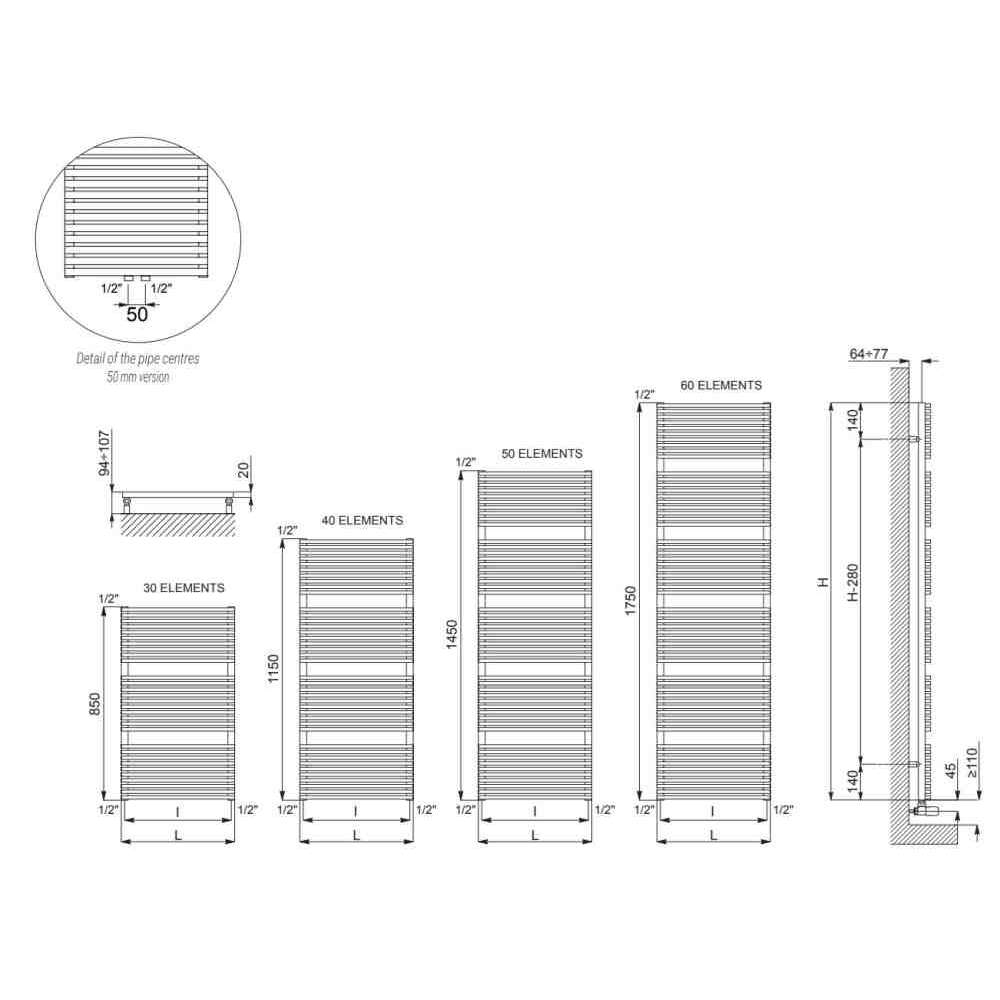 • Poziome elementy grzejne z lakierowanej stali miękkiej 15x20 mm.