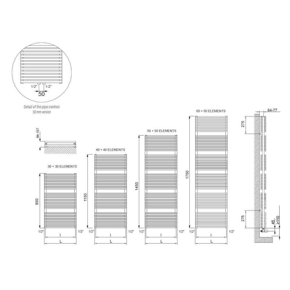 • Kolektory pionowe z lakierowanej stali miękkiej ø 30 mm.