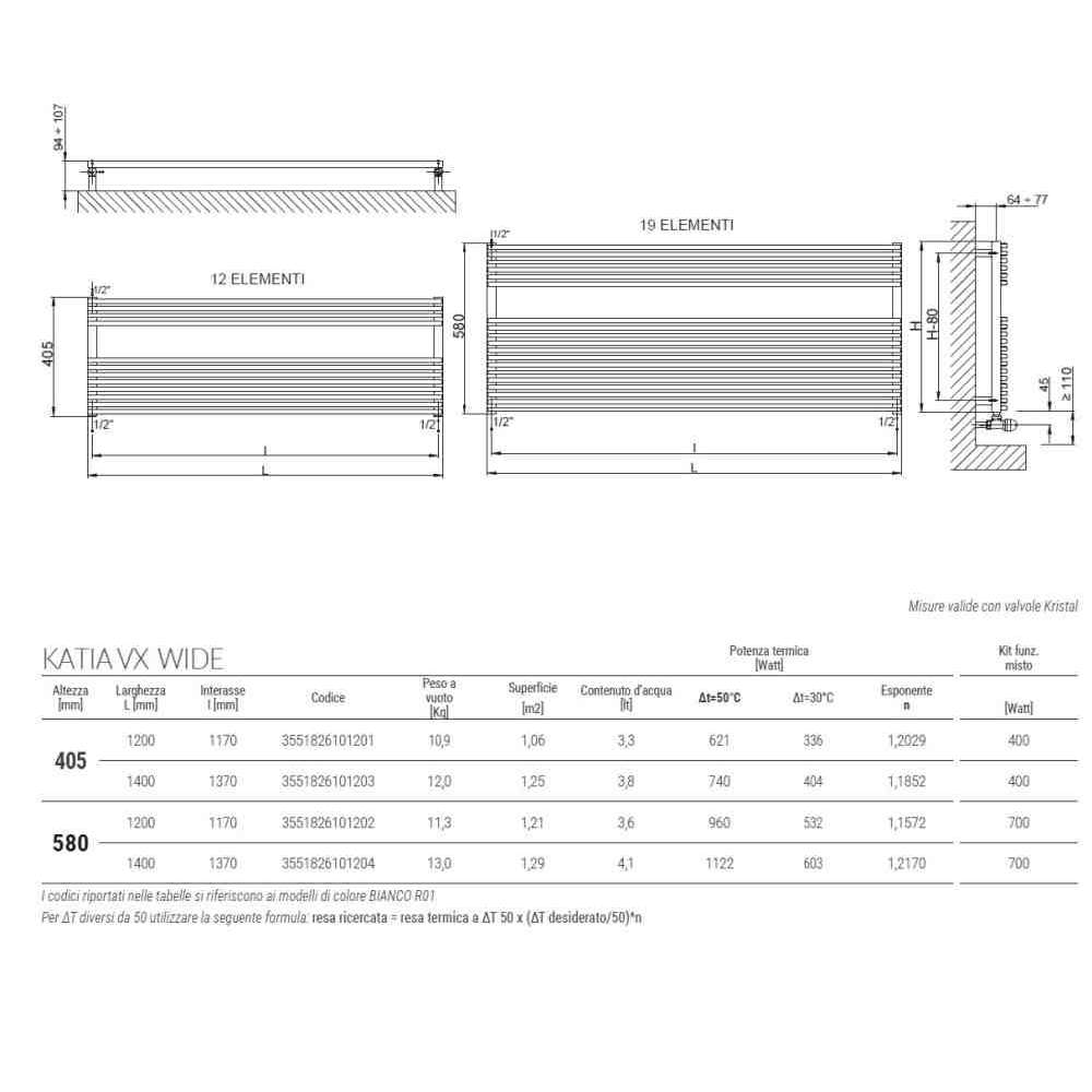 Poziomy podgrzewacz do ręczników ze stali węglowej Cordivari KATIA VX WIDE