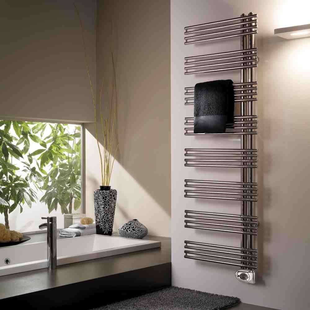 Minimalne kształty tego nowego modelu grzejnika z polerowanej stali nierdzewnej. Dwa pionowe kolektory podtrzymujące poziome rurki pełniące rolę przydatnych wieszaków na ręczniki. Jakość wykończenia nadaje grzejnikowi elegancji i wyrafinowania.