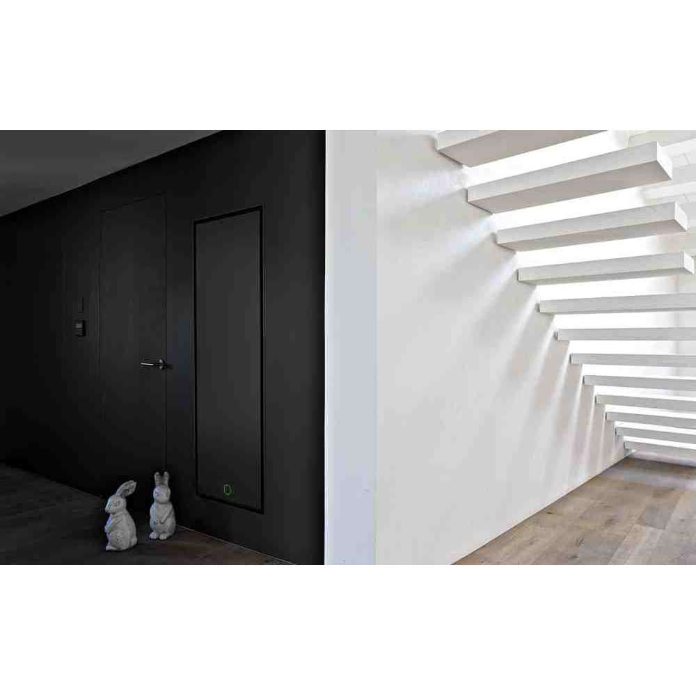 Kompaktowe i wyciszone wbudowane wentylatory dodają mocy do wydajności grzejnika. Wszystkie mocowania grzejników, przyłącza hydrauliczne i elektryczne są niewidoczne, zarówno w wersji naściennej, jak i przyściennej.