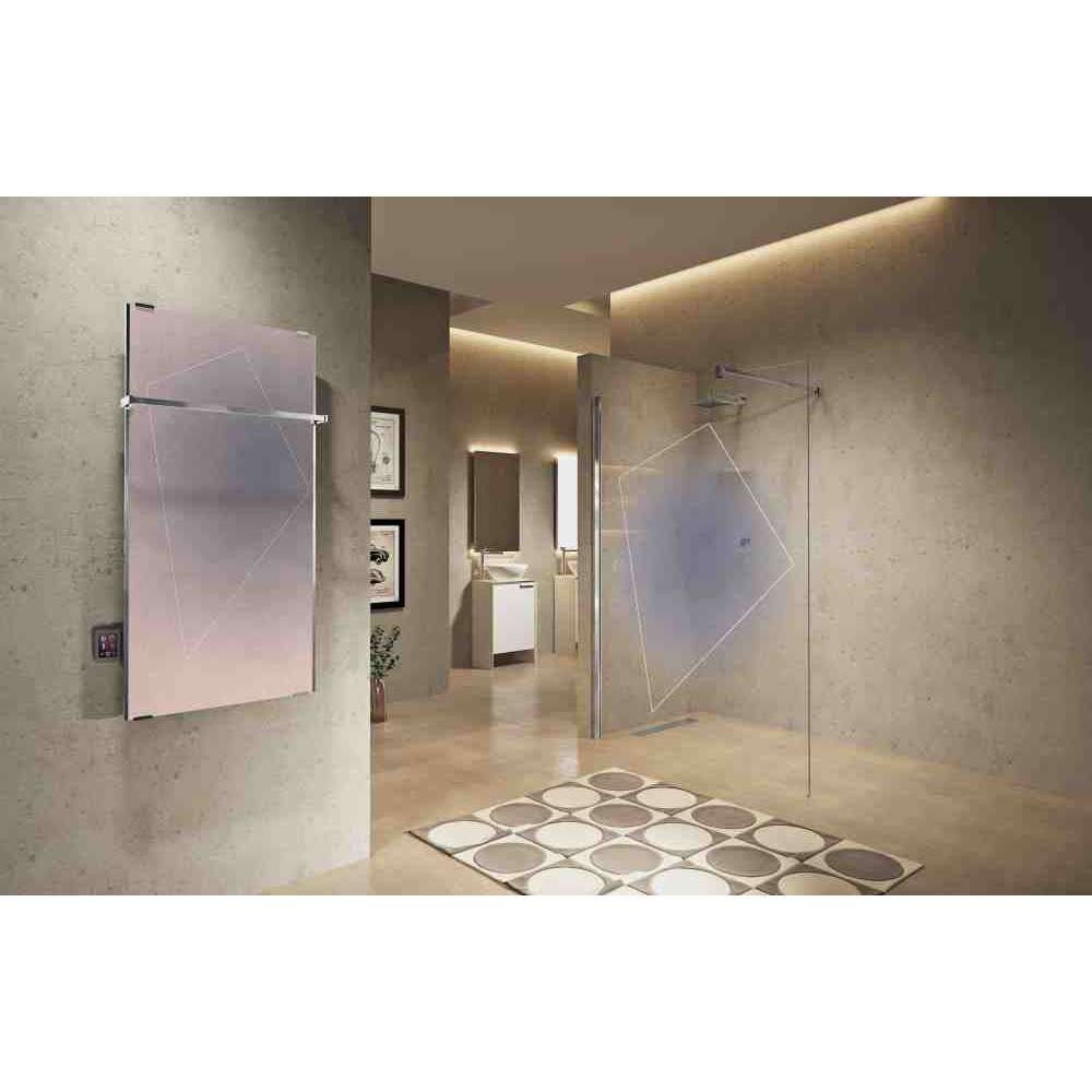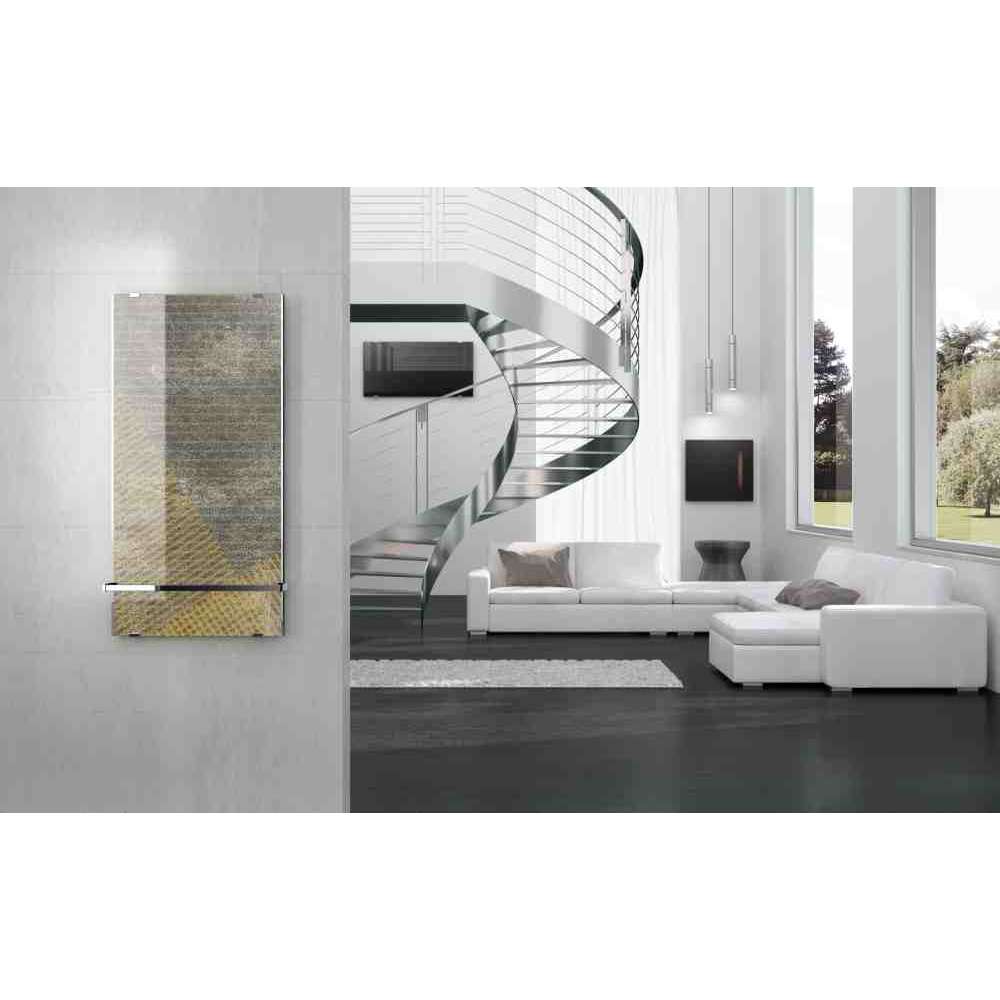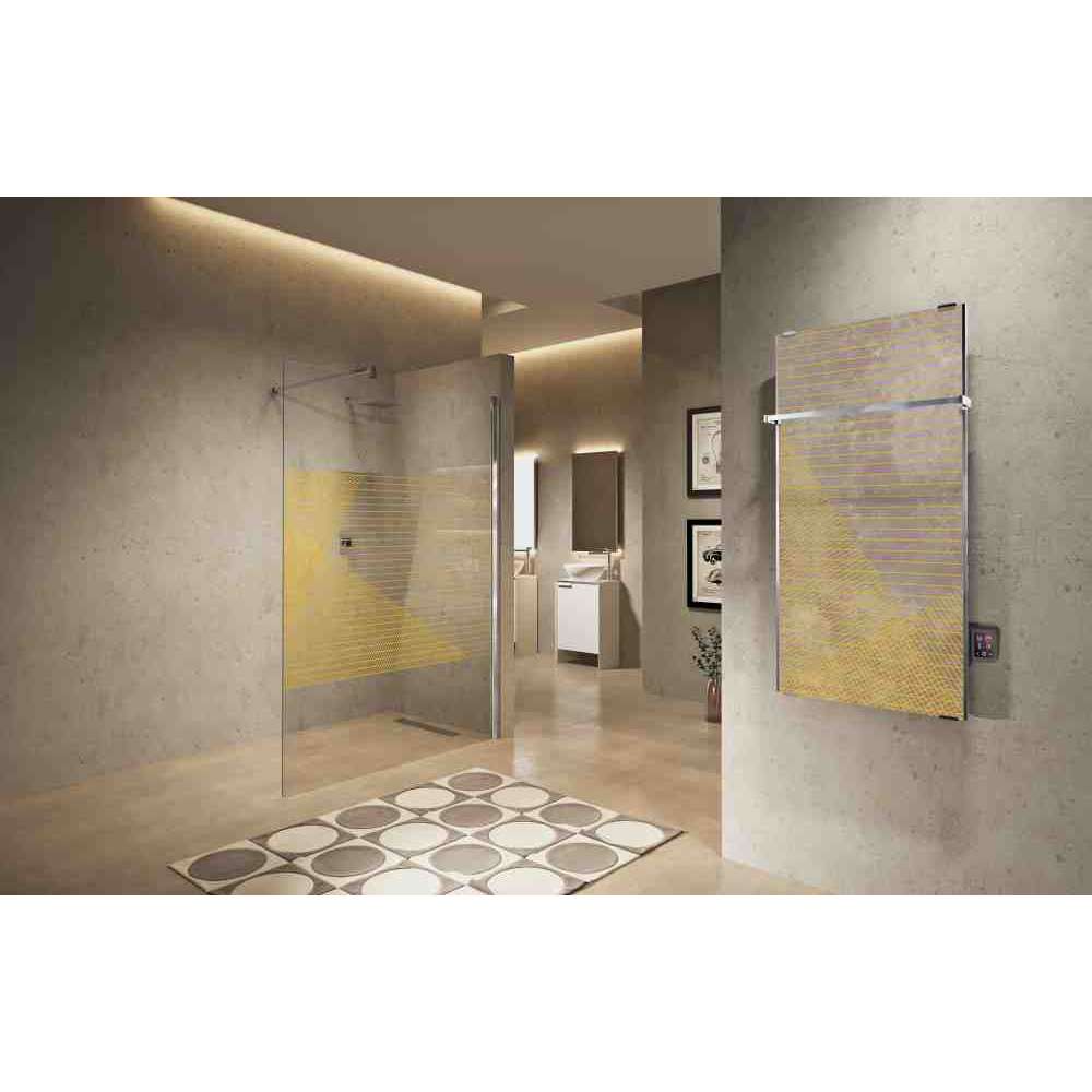 Grzejnik elektryczny z kryształowym panelem z sitodrukiem hartowanym w technologii In Art, może być montowany w pionie lub w poziomie. Grzejnik „Sole” firmy Novellini to uzupełnienie w sam raz do łazienki i nie tylko: dzięki wersji dekoracyjnej lub lustrzanej pasuje do każdego otoczenia i stylu. Panele wykonane są z bezpiecznego laminatu szklanego: ochrona przed bryzgami wody jest zapewniona i dlatego można je bezpiecznie stosować.