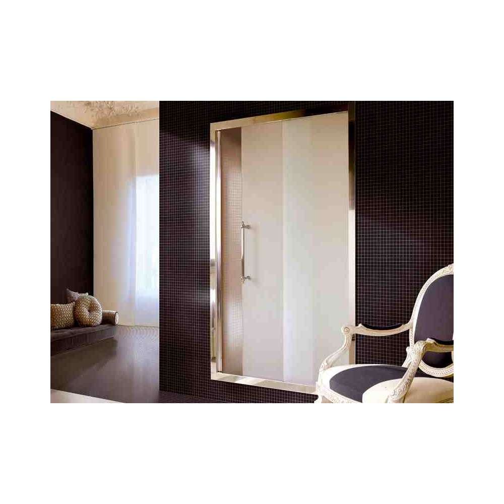 Kabina prysznicowa z matowym szkłem, dostępna również w przeźroczystym i dekorowanym szkle. Rama w chromie, dostępna również w wykończeniu w kolorze jasnego złota.