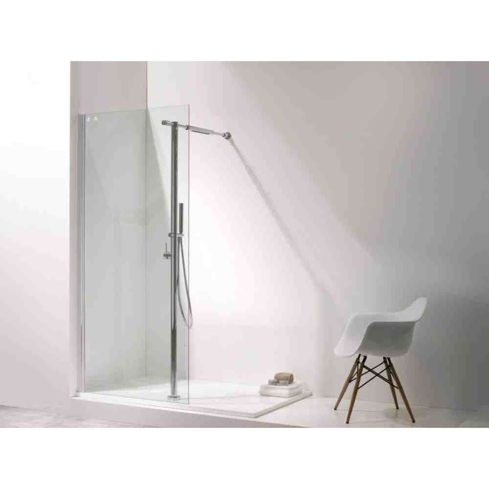 NEW AQUA została zaprojektowana jako kompletna kabina prysznicowa wyposażona w nowoczesny design składający się z brodzika z żywicy, ekranu z przezroczystego szkła hartowanego i prostej kolumny prysznicowej z główką prysznicową i kierunkową deszczownicą, zintegrowaną z tensorem.