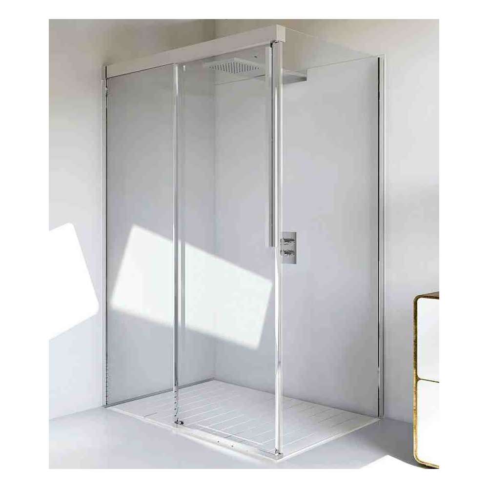 MYRES SC1+F to dwustronna kabina prysznicowa wyprodukowana we Włoszech. Wyposażony jest w system SOFT-CLOSE, zapewniający płynne i bezpieczne otwieranie i zamykanie drzwi. Jest to wersja NAROŻNA z bokiem drzwi przesuwnych i bokiem stałym. Wysokość 200cm. Miejsce na wejście 40cm. Rama z polerowanego aluminium i przezroczystego szkła hartowanego o grubości 8 mm. W komplecie zabieg zapobiegający osadzaniu się kamienia. Regulacja 1,5 cm do nierównych ścian. System zwalniający w dolnej części drzwi dla łatwego czyszczenia.