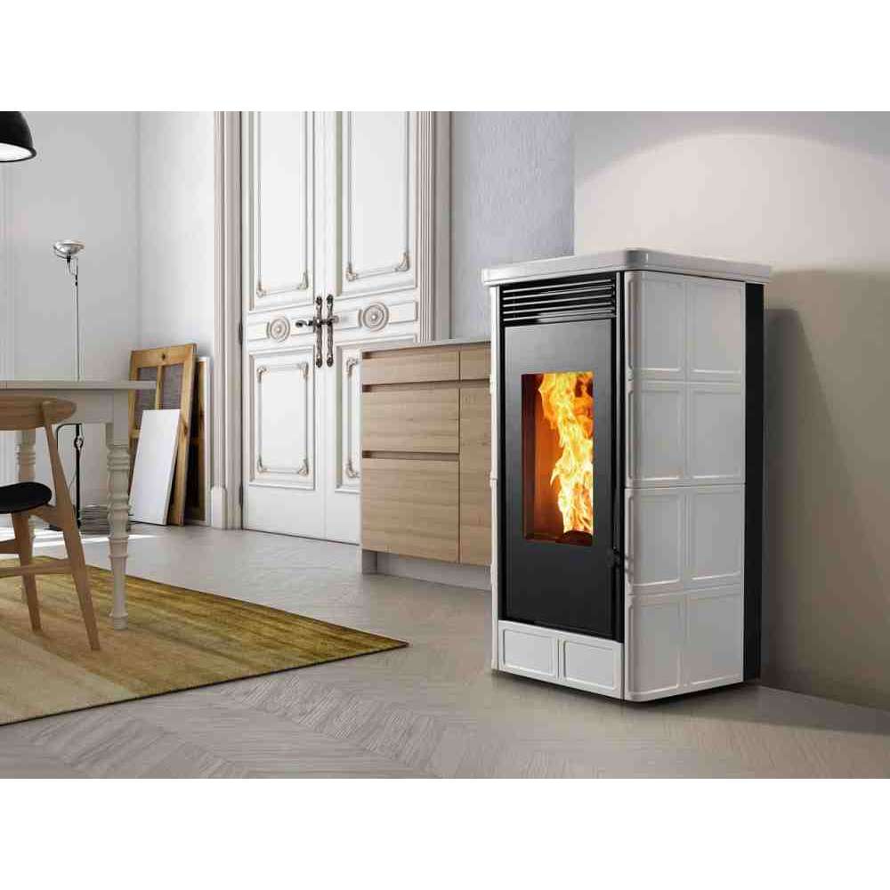 Elegancki i nowoczesny przegląd uspokajających form tradycji: piec można łatwo zainstalować w domach wiejskich, a także w mieszkaniach miejskich. Charakteryzuje się reliefową dekoracją okładziny z majoliki oraz czystymi liniami frontu z płaskimi drzwiami. Okładzina z majoliki. Konstrukcja ze stali malowanej na czarno.