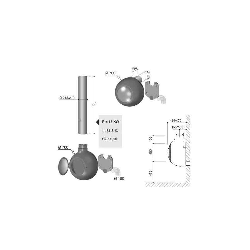 - gwarantowana wydajność przy minimalnej długości komina (wewnątrz plus na zewnątrz) 3m. -