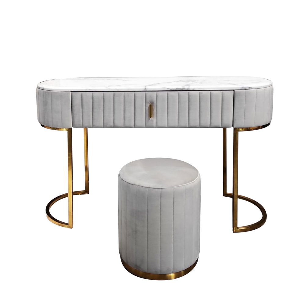 Toaletka w zestawie z elegancką pufą wyrafinowana szara Lille
