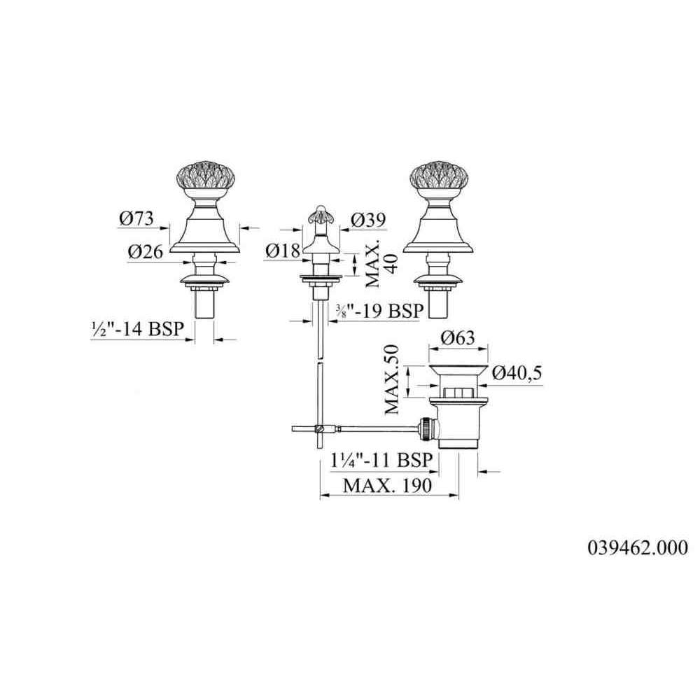 Bateria bidetowa 3-otworowa Bronces Mestre Antartica Swan