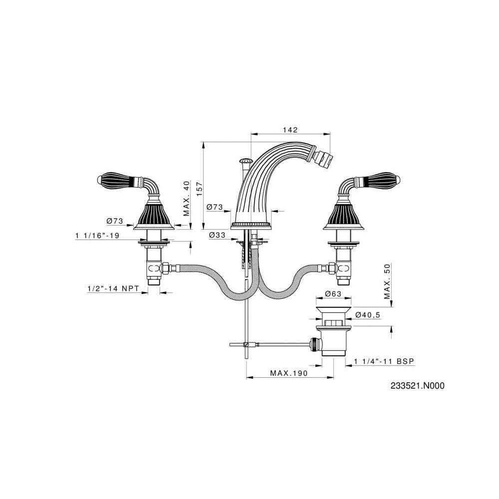 Bateria bidetowa 3-otworowa, wykończenie polerowane Bronces Mestre 233521.N000.50