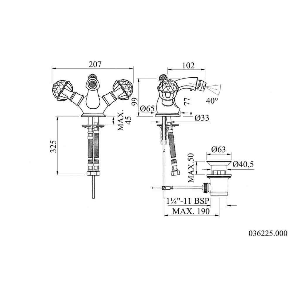 Bateria bidetowa 1-otworowa z kryształami Swarovskiego®. Bronces Mestre Atlantica