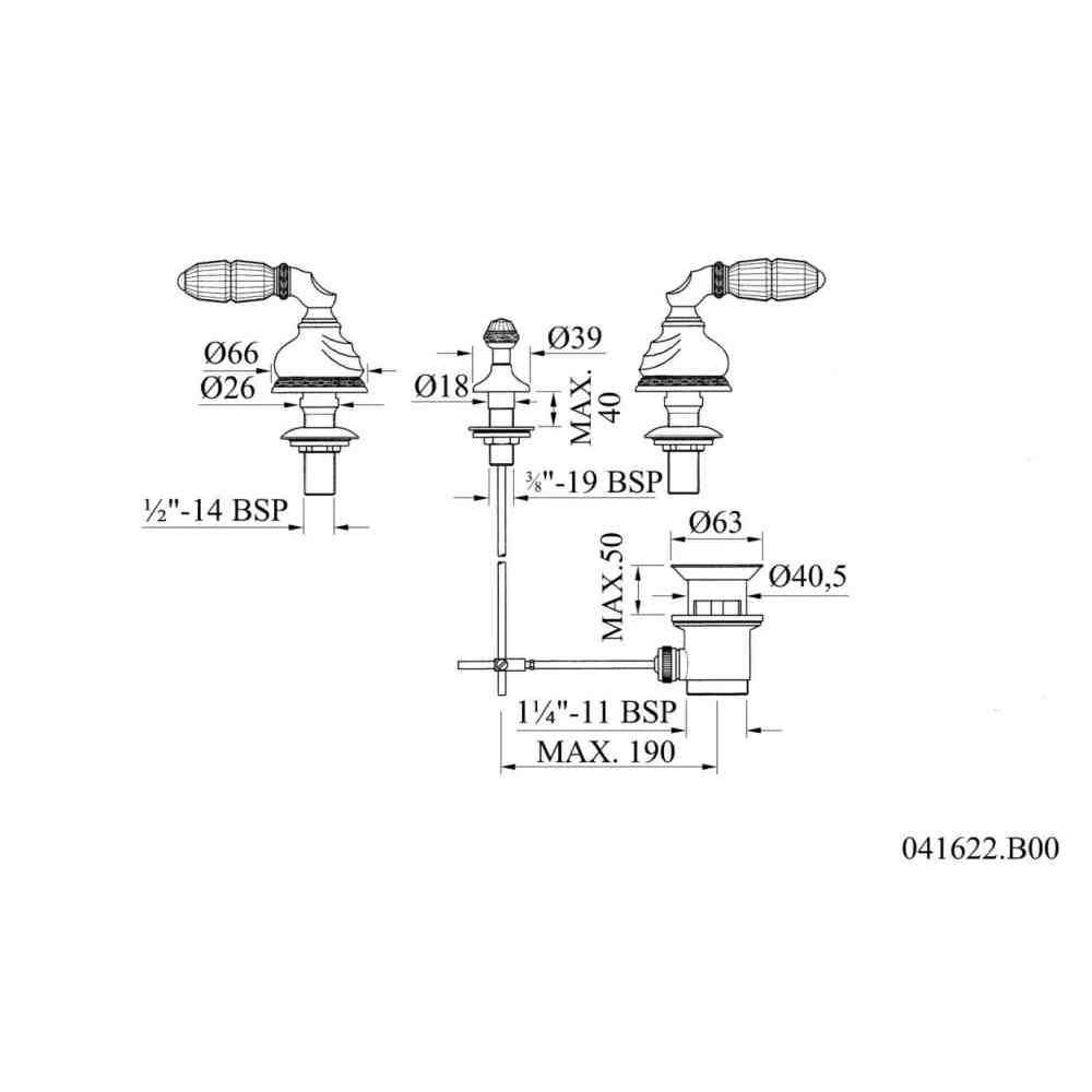 Bateria bidetowa 3-otworowa z kryształami Swarovskiego®. Bronces Mestre Austral
