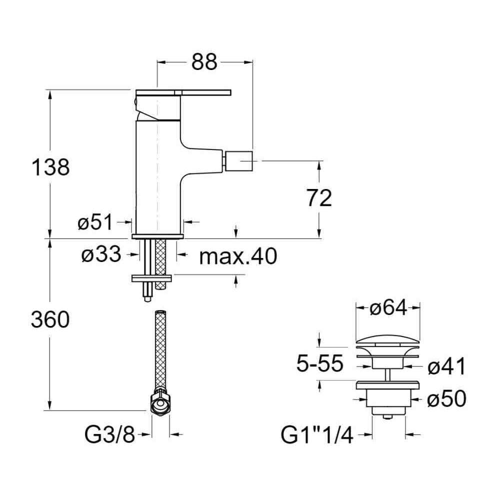 Bateria bidetowa nablatowa jednouchwytowa Cristina Rubinetterie Diario CRIDI320