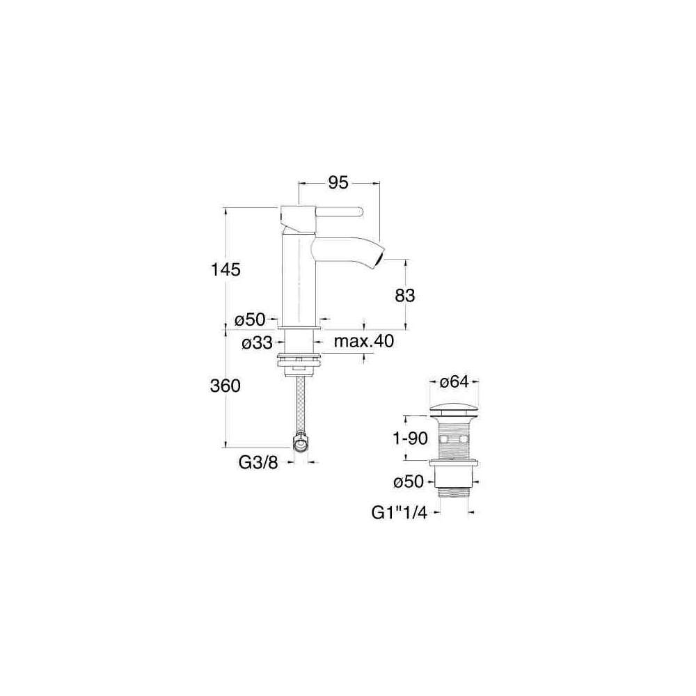 Bateria bidetowa nablatowa jednouchwytowa ze stali nierdzewnej Cristina Rubinetterie Ix CRIIx320