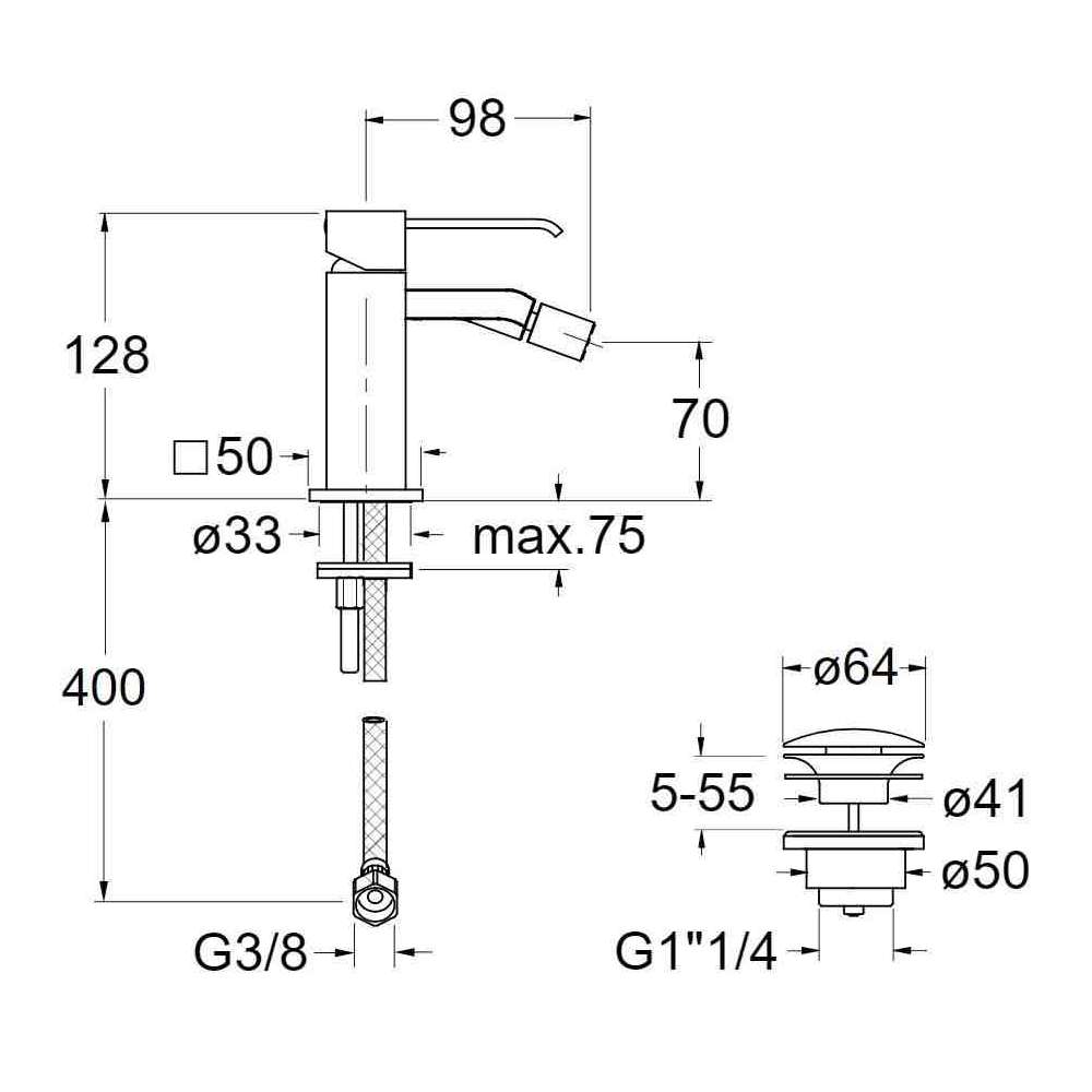 Bateria bidetowa nablatowa Cristina Rubinetterie Quadri CRIQM320
